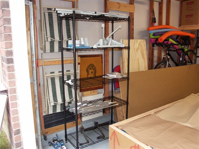 Man there is a buttload of parts here. At least I got my Number One inventory specialist here to help. Kim is checking the parts off the list as I unwrap and put on the shelf. I had to get another shelf from Home Depot like the one I got when I started the Empennage. Van's gives you 30 days to inventory and declare if anything is missing.