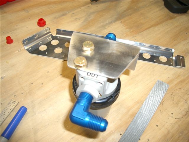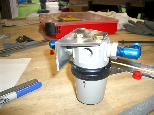 I had to do it. I stole another great idea off of Jeff Bordelon. I made a bracket for the Andair gascolator. I screwed the first one up so I made another one and it came out great.