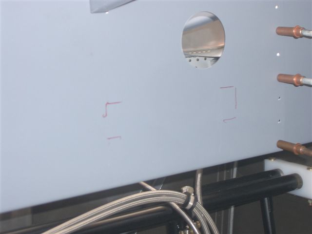 Jon needed some fiberglass epoxy so I met him at the hangar to give it to him. I worked some more on the panel. First I cut the side rails to mount inside the frame which will hold the avionics trays. Again one tray is wider than the other 2 so I will need to figure out the layout before I drill in place. The frame cutout is exactly the width of the transponder and the radio. Too bad the com panel is wider. Also marked a general spot where the Sl40 will pass thru the subpanel.