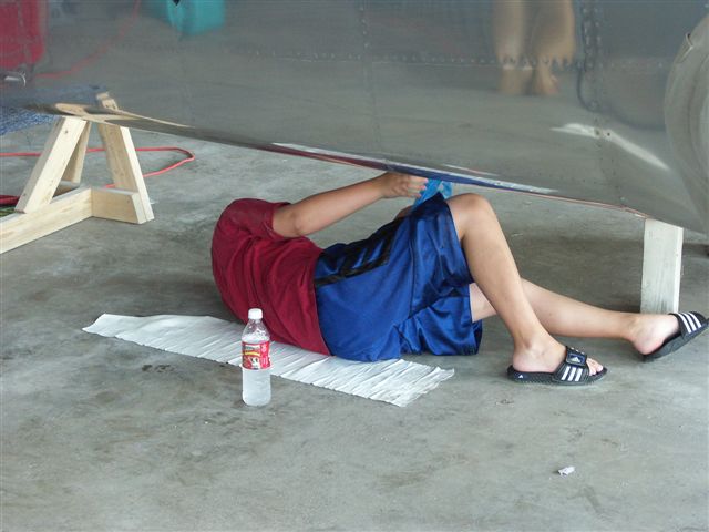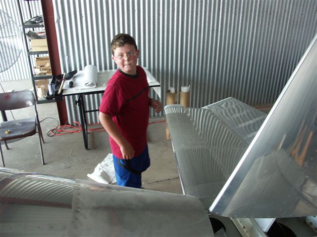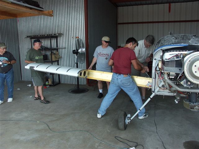 After that it was out to West Houston to help Phil put his wings on. I got some pictures of this process. This kind of stuff is a real motivator seeing a plane get this close to flying. I even got a few pics of Derek peeling the plastic off. Phil's plane is really close now. He should be flying within the next month. Way to go PHIL!