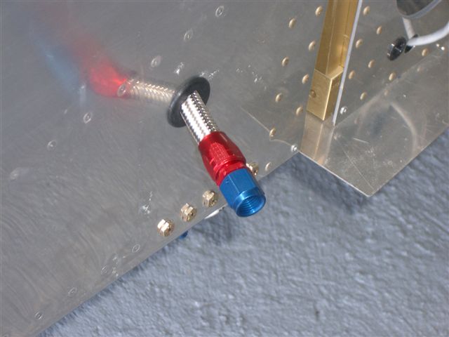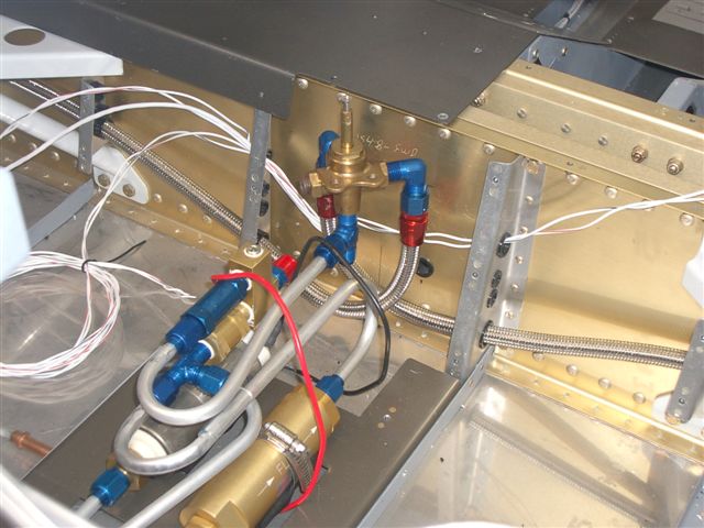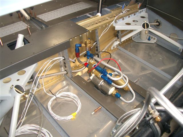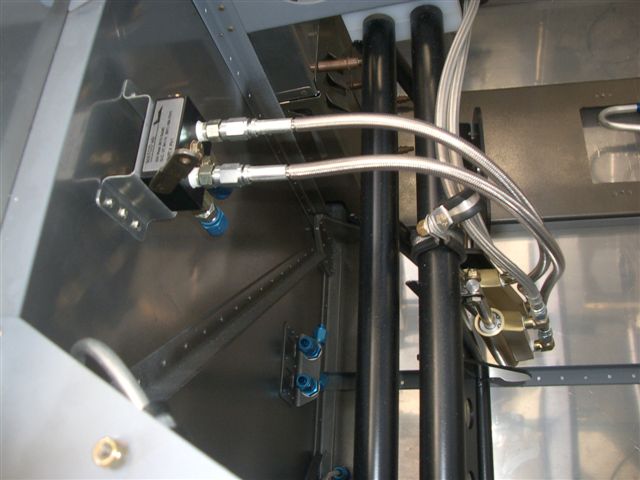 The next step was to run the brakelines. I have to run from the parking brake down to the firewall bracket connections and then from there up the center under the fuel pump and out to the fittings on the left and right gear legs.
