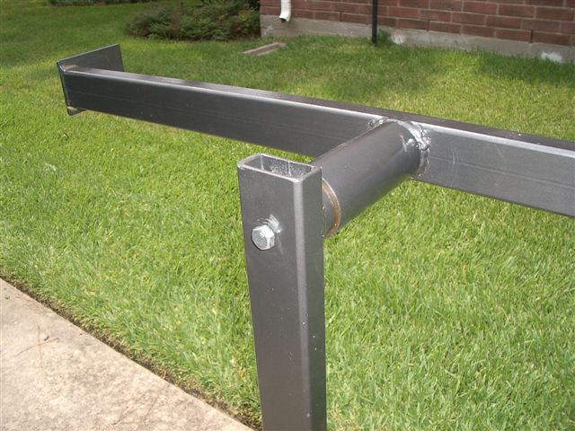 By then it was too hot to get the baggage ribs done so I move on to rotating stand. First I mounted the aluminum side angles using the wood blocks and bolts thru the motor mount holes. Next I drilled the bolt holes to allow the square tubing that holds the front of the plane.