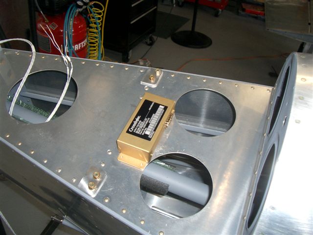 I strolled down to the hangar to drop off a few things. Mainly just an excuse to stop by. I took the magnatometer for the EFIS with me to see how I was going to make it fit on the empenage deck. I have seen a few others with Dynon units do it this way. The install instructions say the plug needs to face forward so that limits puting it against the forward edge. Then you have the first 2 lightening holes to deal with.