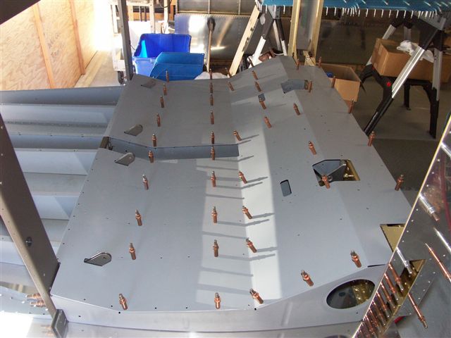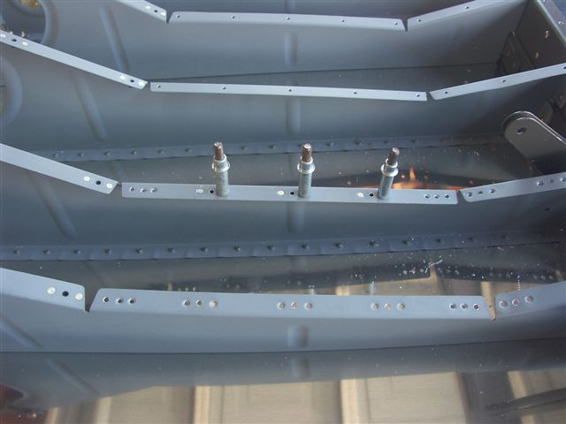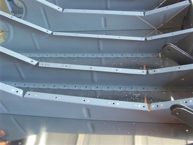 Completed riveting the center channel platenuts. Reinstalled the primed seat pans. Ready to move on the the baggage area floor pans.