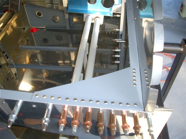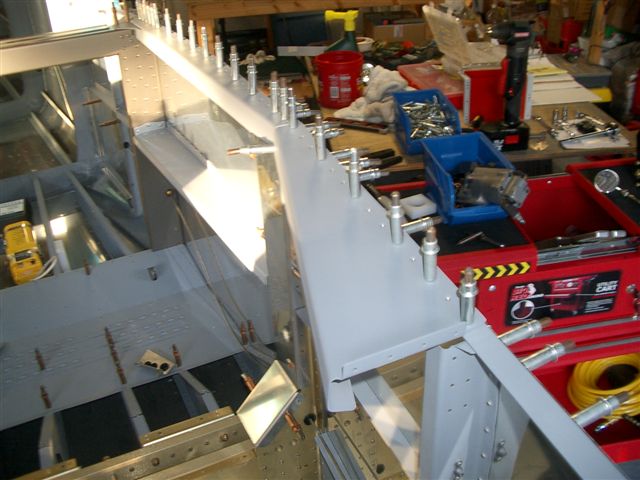 Removed the forward top skin and installed the rear topskin and clecoed in place. Next I drilled the gussets to the 706 bulkhead.