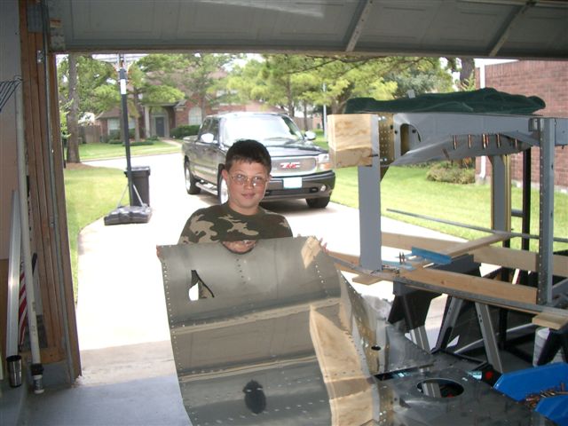 On to the other side skin. More boring deplastification, deburring and dimpling. More edge preping. Getting really close to putting it all back together now. Wow can you believe this. I actually talked Derek into helping me for a few minutes. Now if I can only get him to go flying with me. When he sees this baby go he will want to I'm sure.