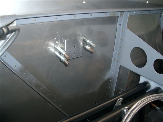 The pictures show the process. Drill debur dimple..... you know the drill. Once installed I ran the hoses and then mounted a adel clamp in the center bearing position to hold the longer cross over cables. Next I mounted and adel clamp with a smaller one to hold the brake lines centered over the master cylinders. Actually the longer crossovers are a few inches short. I am going to see how this works if they need to be longer I will replace the 2.