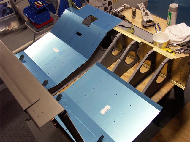 Completed riveting the seat ribs to the 704 bulkhead. Installed the bolts and snap bushings. I laid the seat pans in place to check the line up of the holes to the seat ribs. Next I will torque the bolts and apply torque seal and move onto the baggage ribs.
