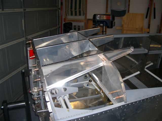 Last I needed to drill the top panel skin and this should be my last debur and dimple of any skins. After drilling the skin I removed it and noticed the center rib that runs from the firewall to the panel was not predrill like the outside 2 ribs. This needs to be done with the skins on to make sure the center rib stays lined up. So I clecoed the center firewall area and the left and right ribs for lineup and stength. Then I used a rivet fan to match the holes of the outside ribs. drilled the top hole and clecoed the rivet fan in place and then did the other 4 holes. Removed the skin again and now its ready to finish up drilling the subpanel assembly. I will do this tomorrow night.