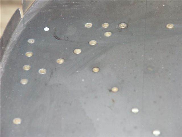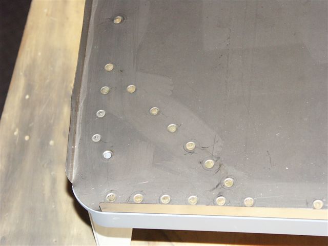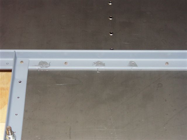 3 of the holes on the top angle brace came out a bit larger hole after I drilled them out. I mixed up some JB Weld and filled in the holes. After it cures I will drill out to #30 again and re-rivet.