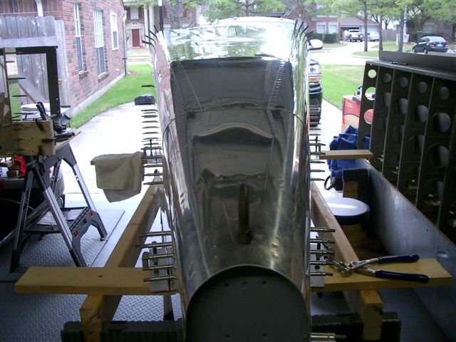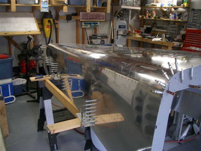 Now is time to reorg the garage and reposition the saw horses to put the longerons down attach the center to the aft and mount the sideskins. BIG FUN!.