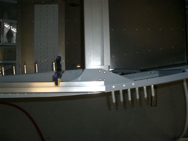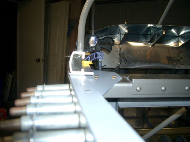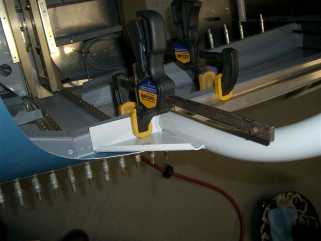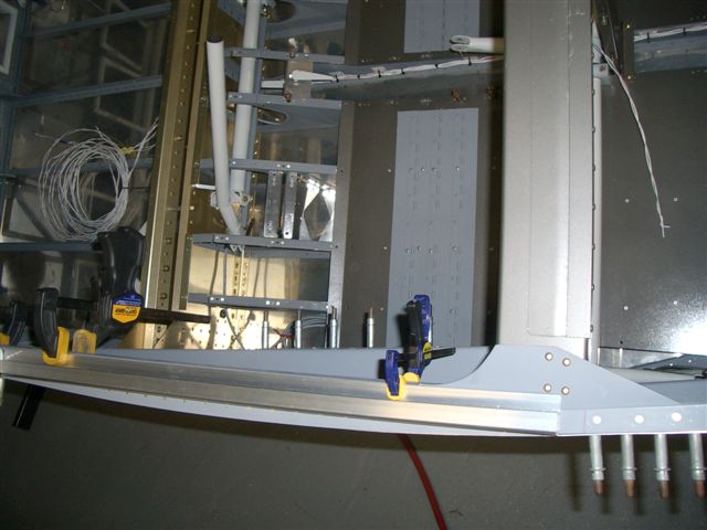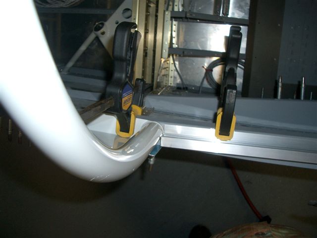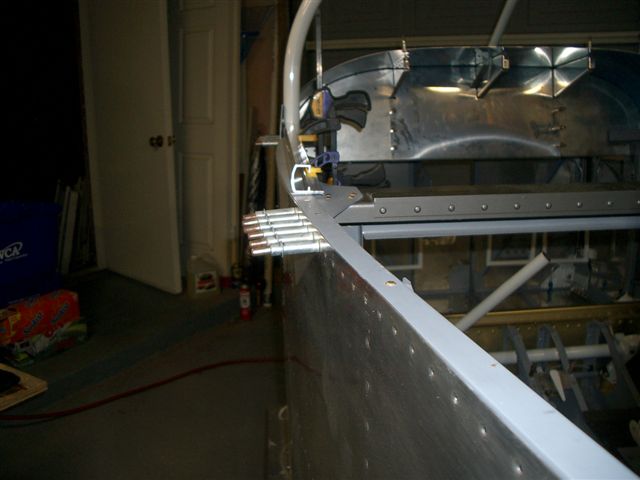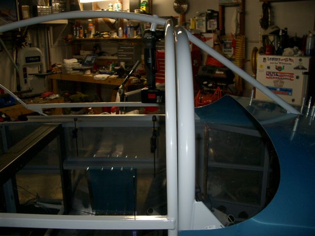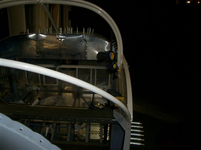 Well seeing Jim's canopy work this weekend got me all jacked so I wanted to see how close my frame really is so after work I went over to the hangar and picked up the frame to match it up to the roll bar. First I cut the slider rails and clamped them into place per the plan sheet. Next I put the frame in place and shimed it up in the back to the approximate level. Then I shot all of these pictures.