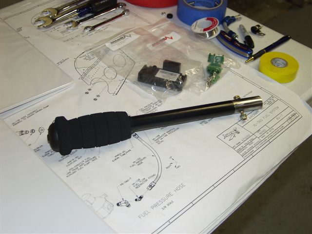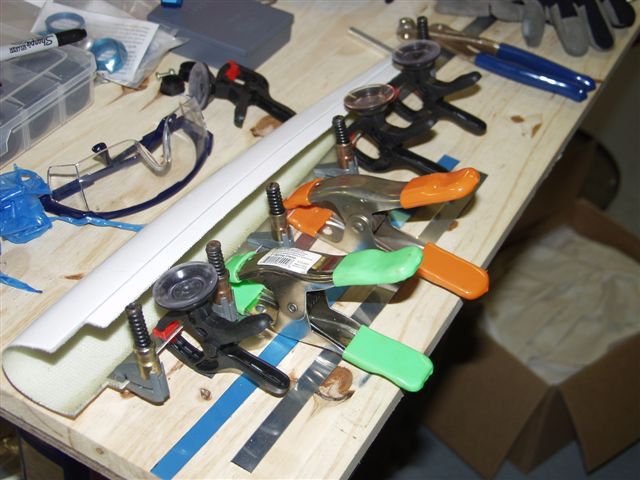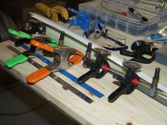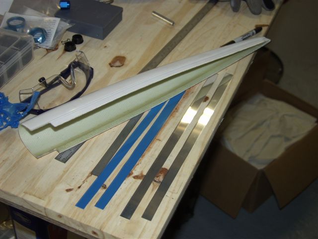 So to get something done tonight I cut some thin strips to glue on the inside edges of the elevator tips to backup the fiberglass so the rivets will not pull thru. Next I wired up the co-pilot PTT switch and slid it on the stick.