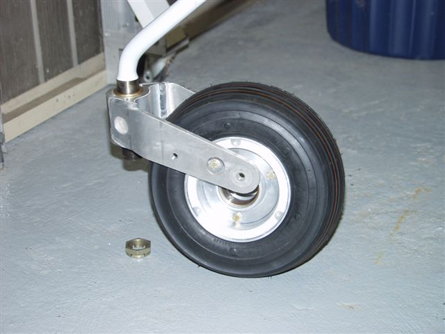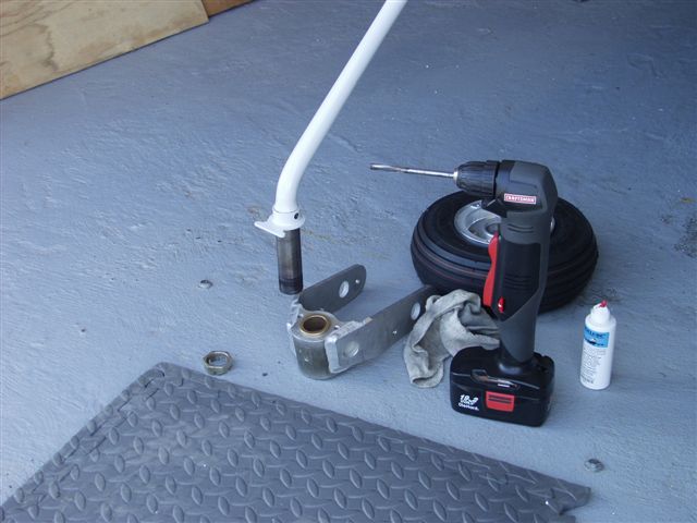 I reamed out the hole and the bolt goes in very snug. This should accomplish the task of making the nose gear creaking not happen. Next I used the 5/16 reamer for the bottom of the nose gear and installed the bracket that sits on top of the nose gear wheel bracket. This is the new one that was designed later to fit the modified gear assembly for the 7A.