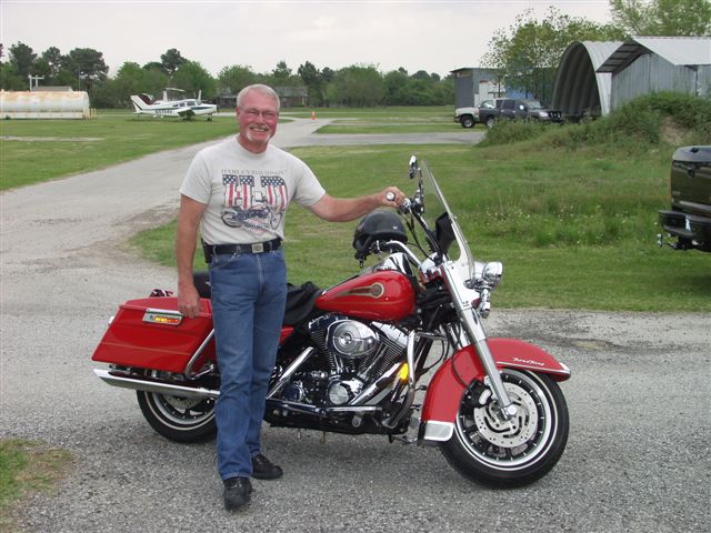 After that you basically make sure the bolts are all torqued down to the bushing and make sure the nuts all have a hole lined up for a cotter pin to slide into. Overall it was a fantastic day. This is a huge milestone and again I want to thank all my buddies for their help. They made it much easier and fun. Thanks to Harley Dave for the lunch from Carl's BBQ. The red Roadking is Mikes Bike. He is going to take flying lessons soon and guess what color his plane will be someday. Hopefully we will pick up Dave's new Street Glide this week. I will post a picture here when we get it!