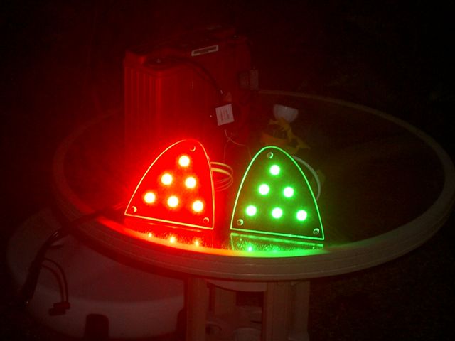 While I was doing all of this my buddy Jeff Bordelon pinged me on Yahoo to burn in the NAV lights I bought from him. So I hooked them up to the battery and let them run for about an hour and a half. I had to take another picture of them all lit up. These are going to work out great. I can't wait to install them in the wing tips.