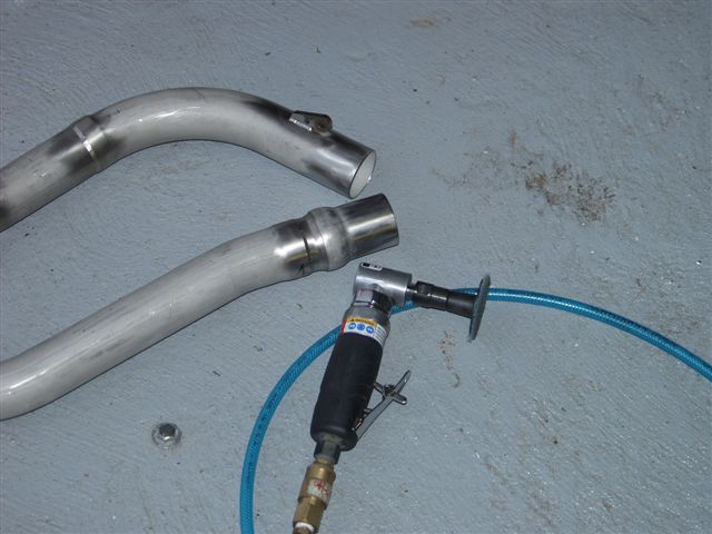 Today I called Superior and the new sump is on the way so I should be able to replace the Ryton one later this week. Tonight I resumed with the exhaust pipe on the #3 cylinder. I used a scotchbrite pad on the diegrinder to polish up the tips that slide inside the other pipe. When I put these on for good I am going to lube them with mouse milk. The pipe on the #1 cylinder is touching the #1 cylinder intake pipe. Not sure what to do about this so I will need to check with someone.