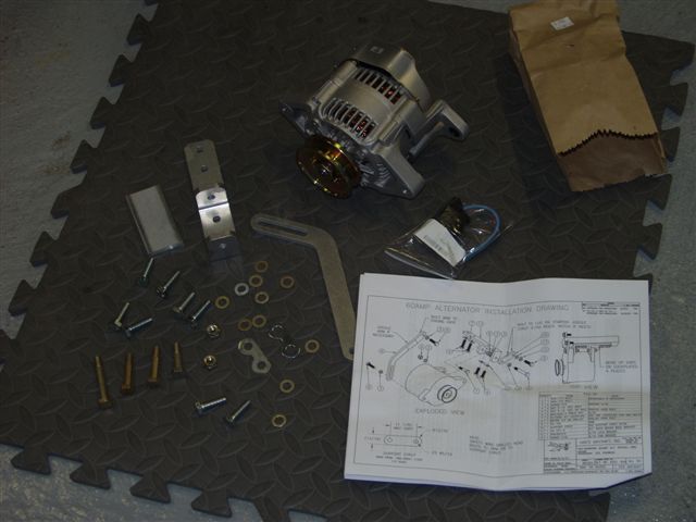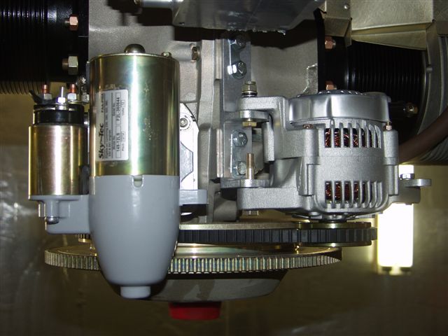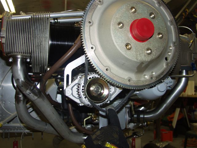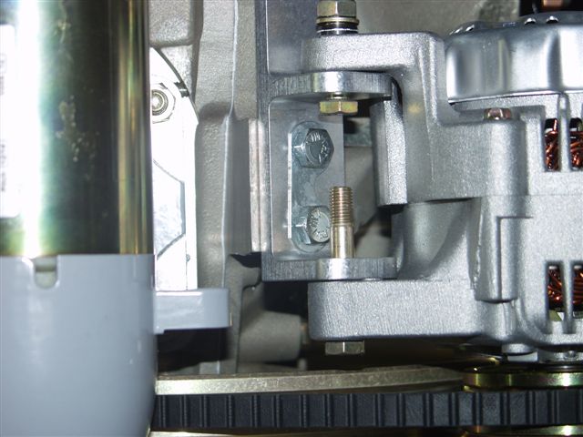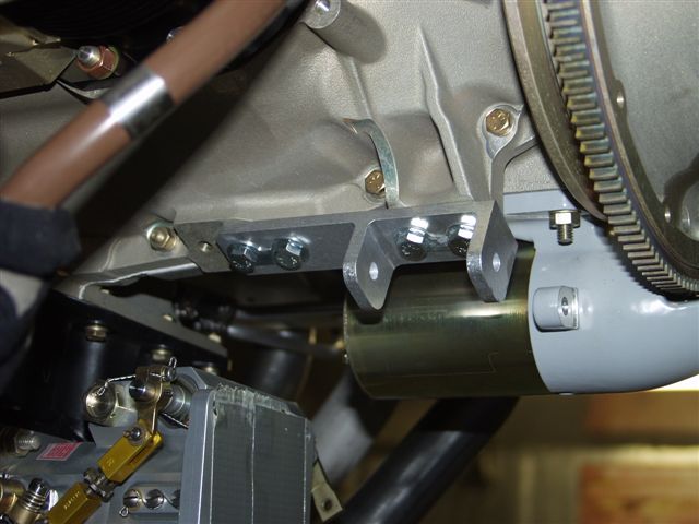 After that I broke out the alternator. I installed the boss mounts on the bottom of the engine. I had to remove the starter to get the alternator belt around the flywheel. The belt is too big. Will have to get another. When I reinstalled it and mounted the adjustment bracket I noticed a problem. There is a piece of aluminum bar that you need to fabricate a bracket to attach to the alternator mount to the starter mount. The picture from the bottom shows how the alignment is off and the bracket will not line up without another piece between the bracket and the starter bracket. About the same thickness as the fabbed bracket.
