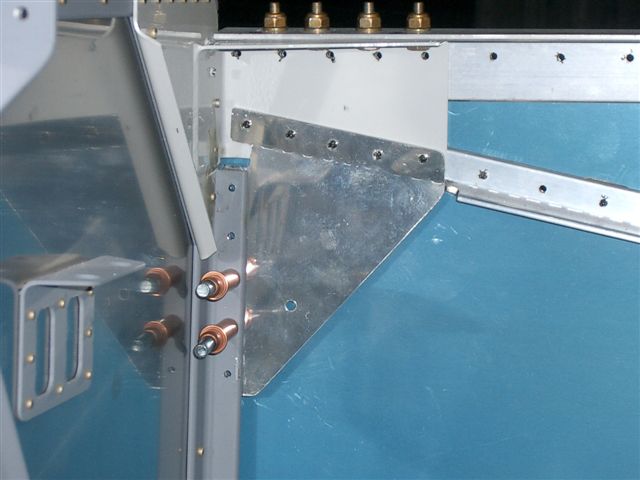 Fabricated the 684 gusset I screwed up. I copied the good one onto the new piece and predrilled the radius corners. Then I made the cuts on the bandsaw. Cleaned up the edges on the scotchbrite wheel and clamped in place. Last I drilled the top holes and then the side holes to the edge of the firewall. Clecoed in place.
