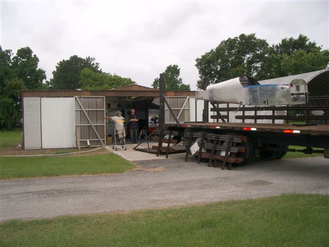 Once we got to the airport my hangar neighbor Gary was working on preping for painting his deck. He jumped right in to help and then Geoff Kimbrough showed up as we were walking it down from the truck. Thanks to everyone it is now safely in its new home. Now I got get a few final things done in the plane and it will be time to get it on the gear and then mount the engine. Yippee!!!