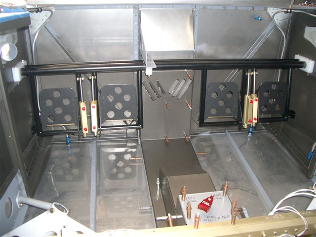 John Dearman was going to help me move the wings from storage to the garage. I wish I could put them at the hangar but with the canopy still sitting in the crate it would be too tight. He was running late so I ran over to the hangar to work on the rudder pedals again. Still can't find the correct bolts for the lower master cylinder connection so I decided to install without them for now. I can't drill the bottom hole in the pedal until it is in place anyway to get the proper brake pedal angle.