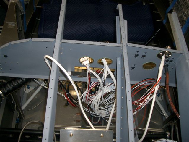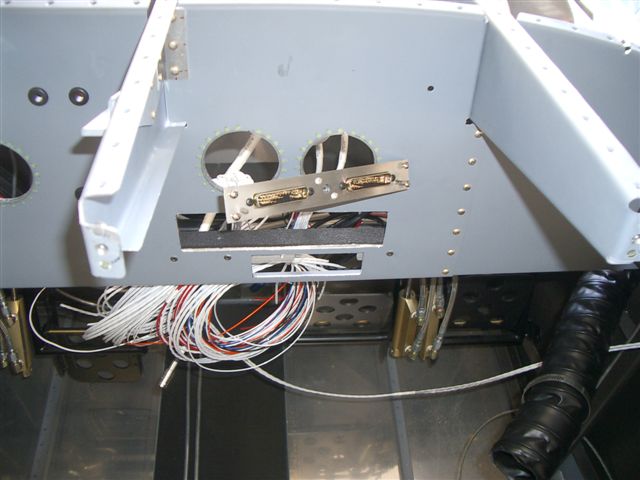 I removed the panel frame and started installing the harness connections on the back of the radio stack. Its going to be a bit tricky sliding this into place with all of these wire bundles but no other way to do it. I riveted in the stiffener I made to support the Comm Radio in the subpanel.