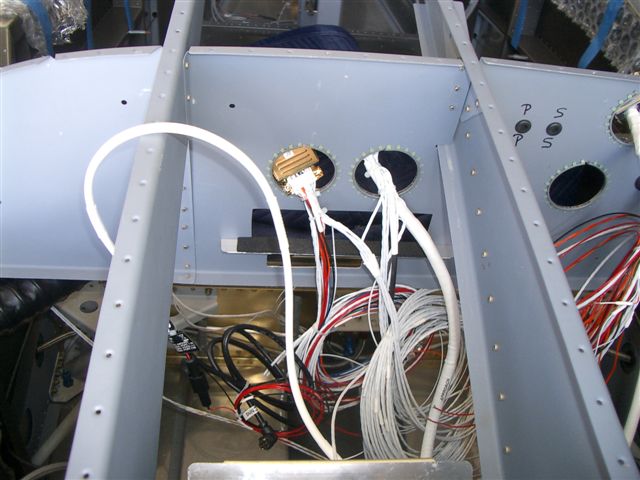 Today I installed some more wiring and added some of the harnesses from Approach Faststack. I installed the panel from again and checked for clearance for the 3500 screen and wiring plugs. Looks good to go now. I drilled another hole above the pitot and static holes for the top DB25 plug.