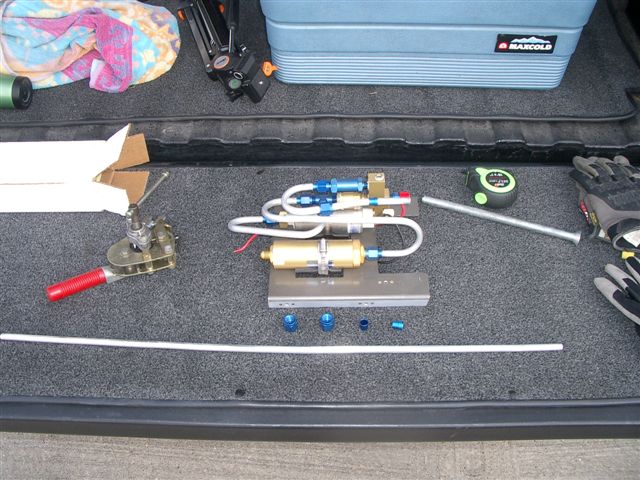 Last I wanted to get the last fuel line ran from the firewall to the fuel pump. I never received the backordered fitting from AN Fittings to make up the flex fuel line so I thought I would give it one more try to bend some alum tubing. Well the first attempt came out perfect. Except the back bend would not fit between the pump connection and the wing spar. The second attempt well lets just say both pieces of tubing are setting in the trash can now.
