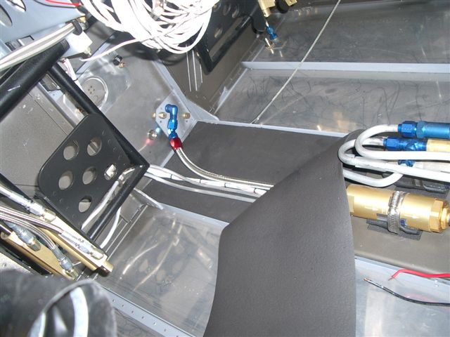 So next after much head scratching and comparing the end connectors that I have for the flex hose I was able to see a way to make up a flex line for this last connection. This is the main fuel line running from the pump to the firewall so the key is to get it done now before the center section gets closed up before the panel frame goes back in. This one turned out great. Once the panel is wired up I will check the pump and all fuel fittings for leaks by pumping fuel from both sides out through the bulkhead fitting in the firewall.