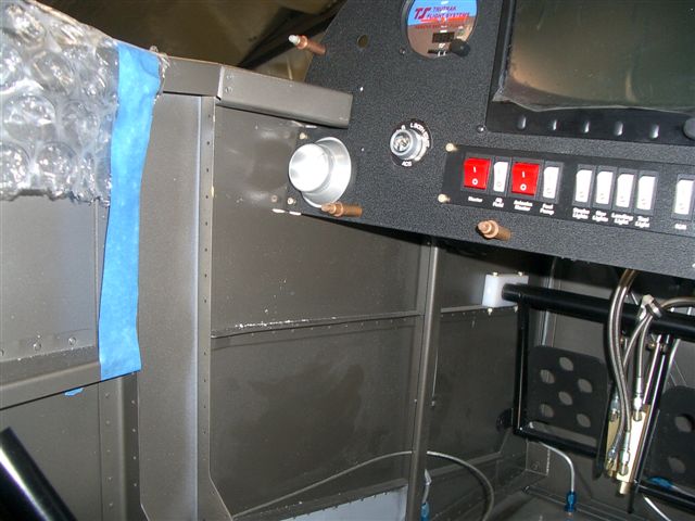 Tonight I installed the left and right panels again for fit and to see the best way to start wiring things up. I am looking at installing a drop down panel on the right side between the panel frame and the subpanel. The thought here is to install contact strips on this drop down panel and run all wires to here. Then everything from here to the E2bus could be bundled and brought over to the final connections there.