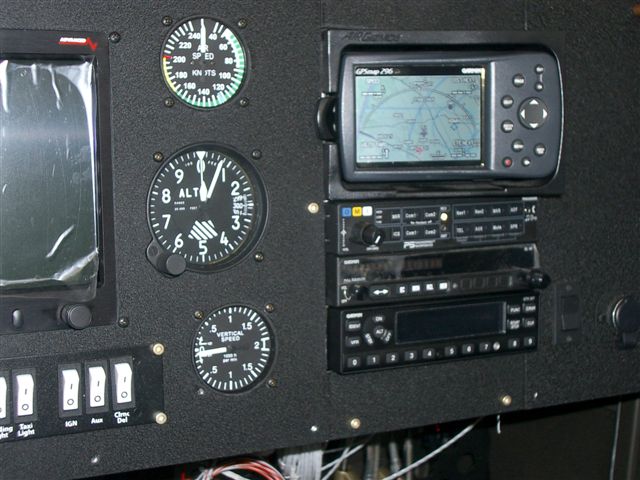If I ever have a problem with the E2bus it would be easy to remove and unplug wires to replace or if I ever decided to change from this config to standard fuses I could mount the fuse panels to the drop down panel. This would minimize reconfig impact. Also installed the GPS and checked how the antenna and power fittings would fit in the Airgizmo install bracket.