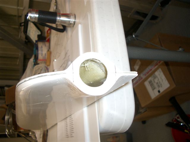 While I was there he gave me some pointers on how he did the fiber glass bottom for the rudder. Today I cut the hole in the back with a hole saw and then filed it out a bit. I need to find the plan sheet to continue on so I started on something else.