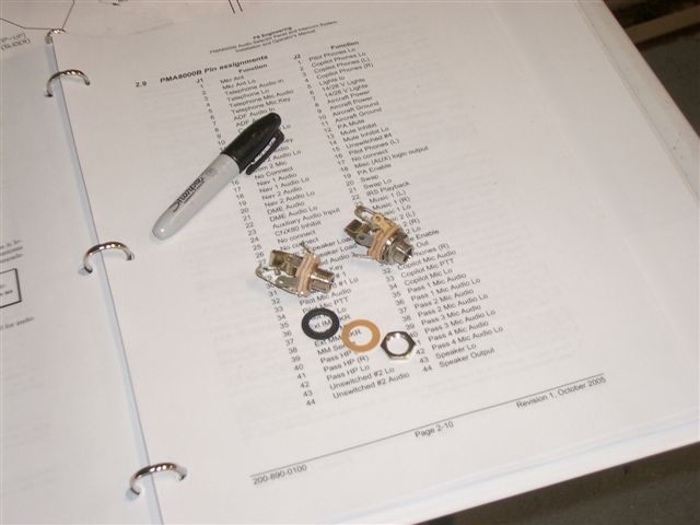 I had decided to install the headset jacks in the side ribs just in front of the 704 bulkhead. This is just in front of the wing spar area. I drilled the holes up high so they won't show much. When you have your own plane you end up leaving the headsets in it so this should work well. I ran the wires from the audio panel thru rubber grommets. Once that was done I could see it would be much better to re run the wire thru the grommets so I pulled the wired out from the tail and redrilled the grommet holes for the next larger size and reran all of the wires thru the panel ribs.