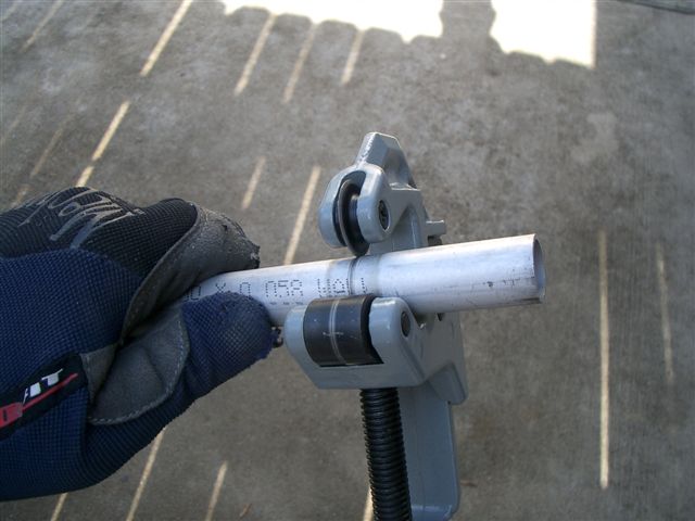 Moved on to the forward pushrod. Again I used the tubing cutter to remove several inches. This one is a bit different. There is a cap with a threaded stud that fits in the ends of the tubes and then the rod end is a female threaded piece that screws onto this cap.