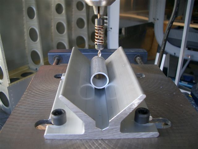 Next I setup the drill press to drill the rivet holes. Used a paper template again to mark the hole locations and drilled away. Primed and riveted.