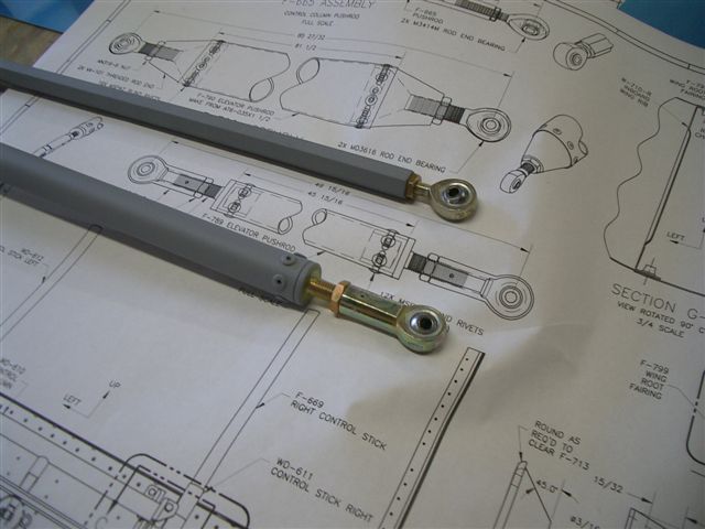 Moved on to the control column pushrod. This was just priming and screwing the rod ends in place with the proper nuts. Locked down the nuts to the required length of 18 and 7/8 inches. Pushrods done!