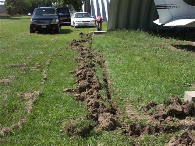 Turns out digging trenches is more work than it looks. I went out to Weiser today to help Jon run a new circuit over to the hangar I bought from him. I can start move in October 29th. Good thing Jon knows all of this electrical stuff. I know trenches are kind of boring but after all of the work it took to get it done I just had to snap some pictures of it.