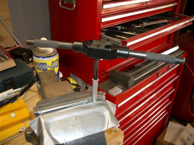 Next I drilled with a #3 tap bit down to 1 inch deep. Then I used a 1/4 28 thread tap to cut the threads for the rod end bearings. Both ends of the rod end up with bearings that are 1/4 but I can't locate the 2 with studs in them. Must be with some wing parts somewhere. Funny how as the parts left to use gets smaller they seem to get harder to find.