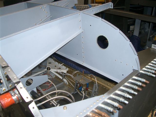I started by clecoing everything in place. While I was working on that Jon fabbed up a stainless plug for a hole I had drilled in the firewall when I thought I was going with a carb engine. When I switched to fuel injection I had to nix the gascolator which left a hole that was unneeded. Anyway we teamed up on the rivet gun bucking thing and a few hours later we had it all complete.