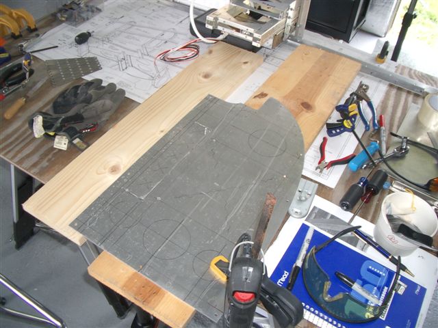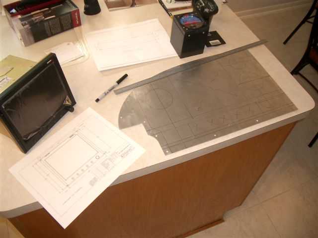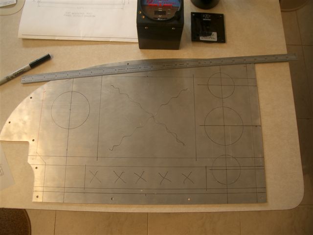 Started out the day drawing the panel cutouts on the pilot side section of the affordable panel. Once that was complete it was off to the hangar to start cutting.