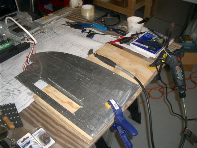 Last I used a fly-cutter to start the on the round instrument holes. There has to be a better way. I drilled for over 2 hours and the first hole is still not done. I will try to finish this one tomorrow and figure a better way for the other 3. No way I am going through this again. Over 8 hours today and the panel is still not complete.
