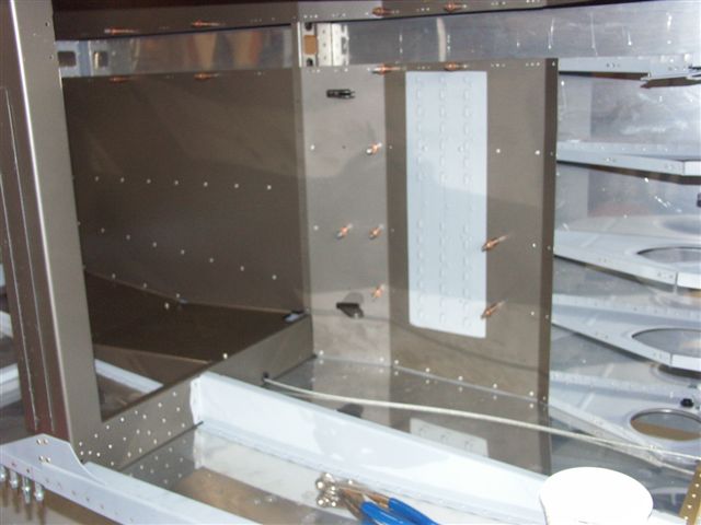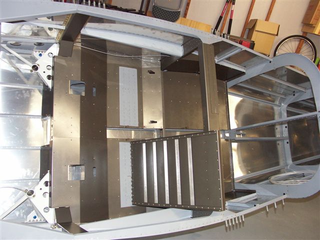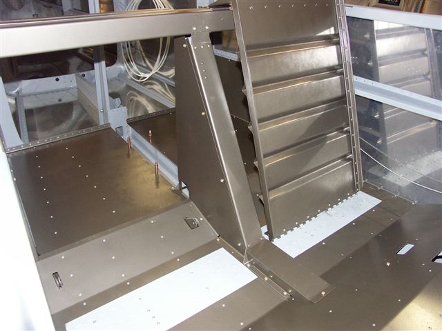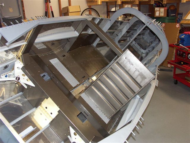 Today I wanted to get the rightside baggage area and floors in. First I popriveted the right baggage area floors in along with the side panel. Next was the forward seat pan and then I put the forward and front panels in to see how it looked and to take some pictures.