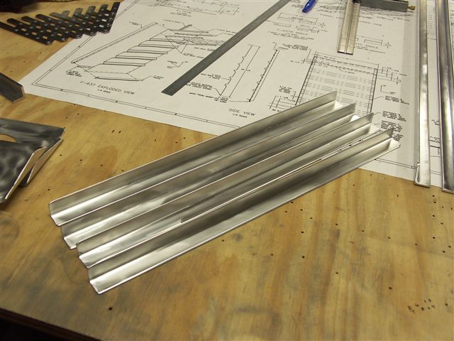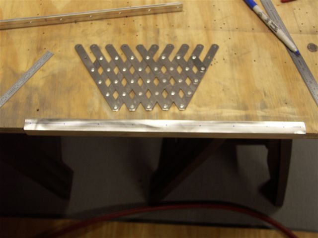 Continued on with the top and bottom seat braces. Same process.... cut off saw, deburred with scotchbrite wheel, etc. Marked rivet holes with the rivet fan and drilled 9 holes in each. Time to cut the hinges....