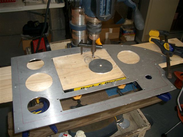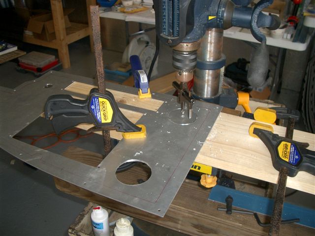 Well I finally was able to complete the holes in the panel tonight. I had borrowed a fly-cutter from Jim K a few weeks ago and then I found the one I bought from Sears in my tool box at home. I had been using that one on the first hole. Tonight decided to try his to see if it would make a difference. WOW I did finish the first hole and then did the other 3 in half the time it took to do the first one.