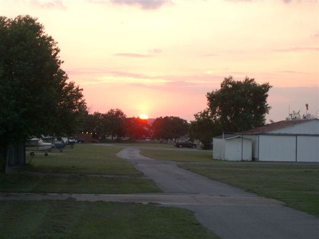 I had to throw in another sunset at the hangar. Just about anyday at the hangar is a good day. Not much flying because rain is in the area. Notice how much the sun has moved south since the one I posted last month. Back then the sun was just behind the tree to the left of the windsock.
