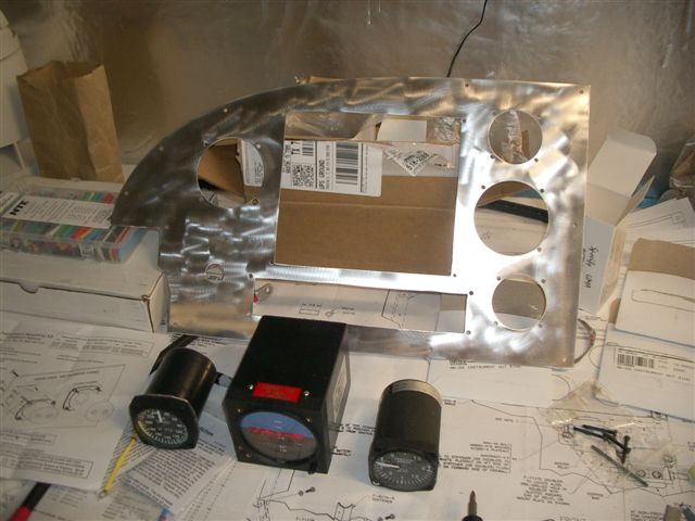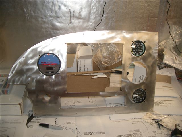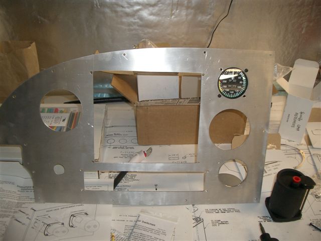 I can't believe how much time I have in this panel so far but it is coming out nice. The last thing I did was using a scotchbrite pad on the pneumatic tool to polish it up for prime and paint. Well one last thing. Notice there is a missing screw hole on the middle 3 1/4 hole on the right. That is for the knob on the backup altimeter. Have to cut a knotch for this.