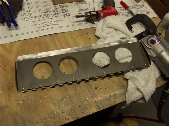 Finished final paint on the left seat parts. Primed and final coated the seat back braces and hinges. Riveted the hinges to the back seat braces.