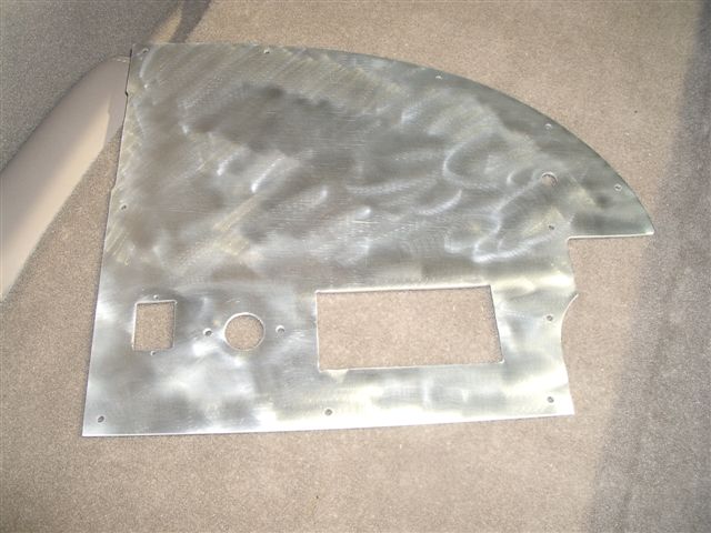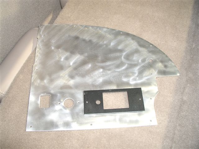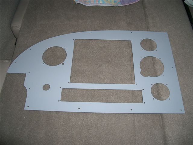 Primed the pilot side panel and radio stack fillers. Next I cut a hole for the EXP2Bus indicator panel, trim switch and 12 volt access point. Also drilled matching holes on left and right corners for the parking brake and heating cables.