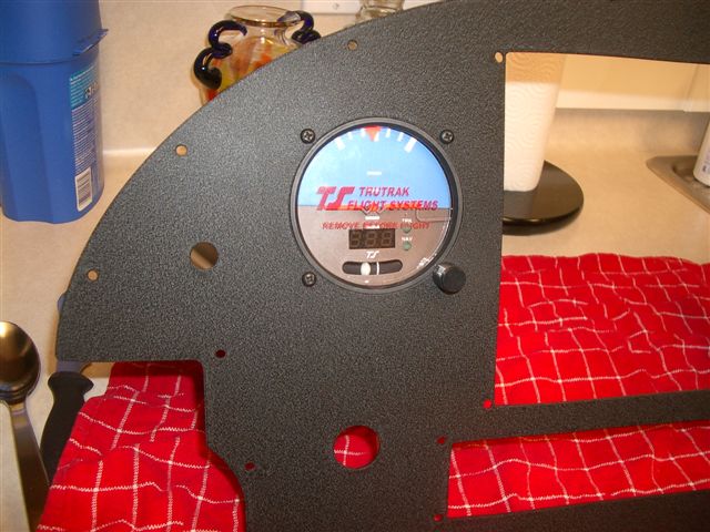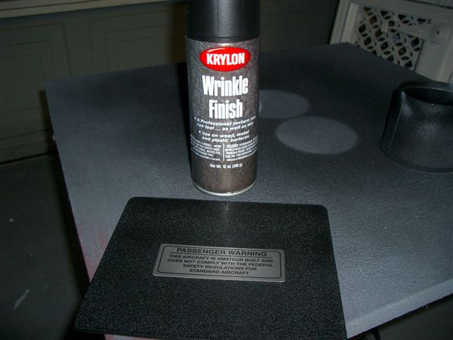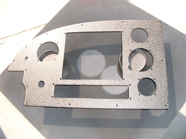 In viewing the VAF site on Saturday morning I saw a guy with the paint look I have been looking for. A semi gloss black wrinkle finish that would minimize glare off the panel. I had seen a few in the past. It also appears pretty durable. I emailed Richard Fazio and he told me I could get it at PepBoys. I picked some up and gave it a test shot on a scrap of aluminum that was primed and had one coat of Rustoleum Semi black. Came out nice so I went with it. I think its going to look nice.