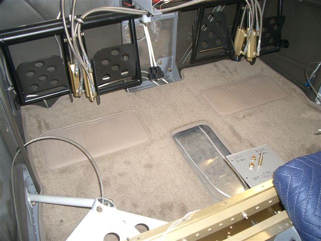 First I test fit the carpet from Classic Aero Design to make sure there was room to install the transponder antenna next to the vent in the floor just behind the firewall. This gives good seperation from the com antenna and keeps the coax run short as well. I drilled a pilot hole next to the vent on the right side and then opened it up with a unibit to full size.